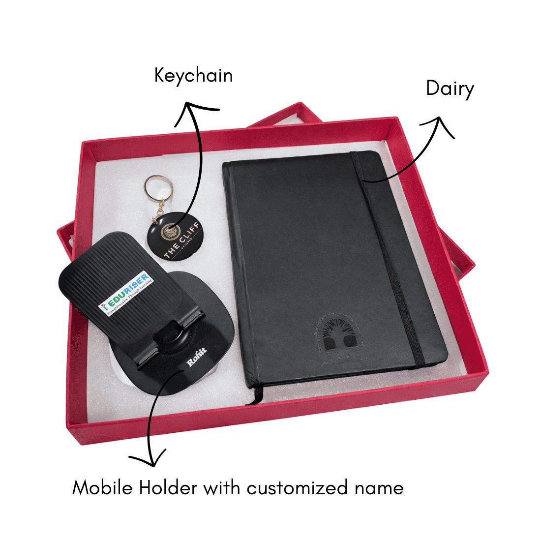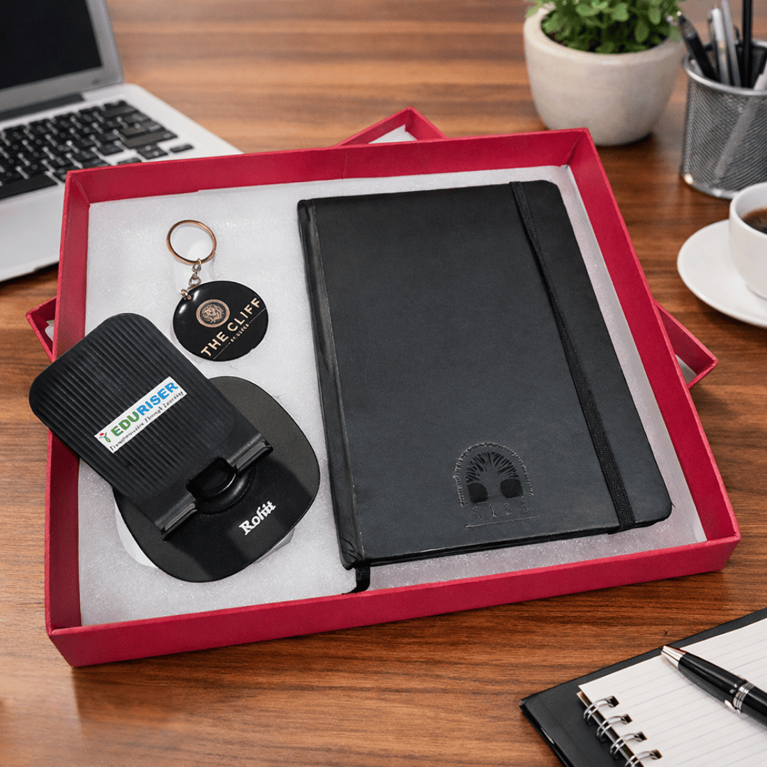 Each item in the set — the diary, pen, and mobile holder — offers practical everyday use, ensuring your brand remains visible in daily work routines. With the option to add company branding on the products, it becomes a great way to increase brand visibility and create a lasting impression.